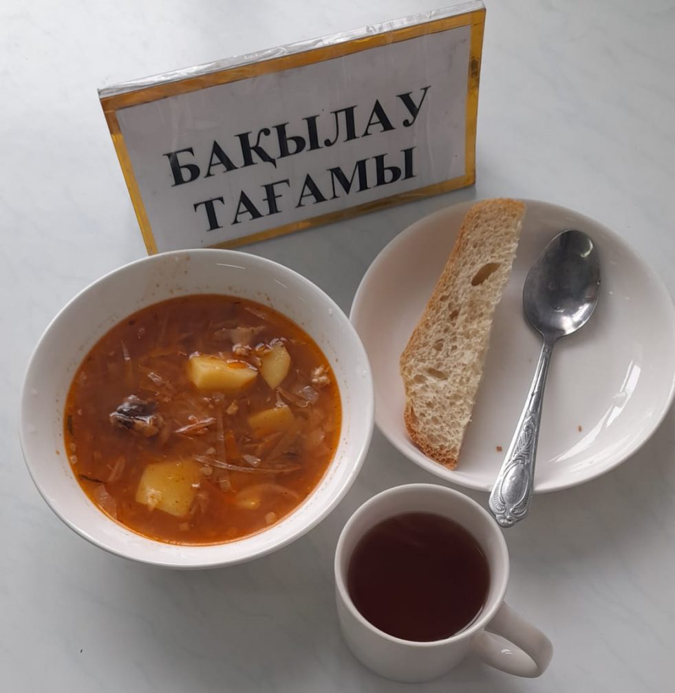19 желтоқсан 2024 жыл Ас мәзірі:1.Ет қосылған жаңа қырыққабат борщ сиыр еті 2.Лимон мен қант қосылған шай 3.Нан 4.Алма