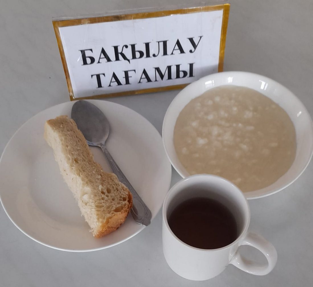 07.10.2025жыл. Ас мәзірі: Ет пен сорпа, нан, сүзбе, қант қосылған тәтті шай.