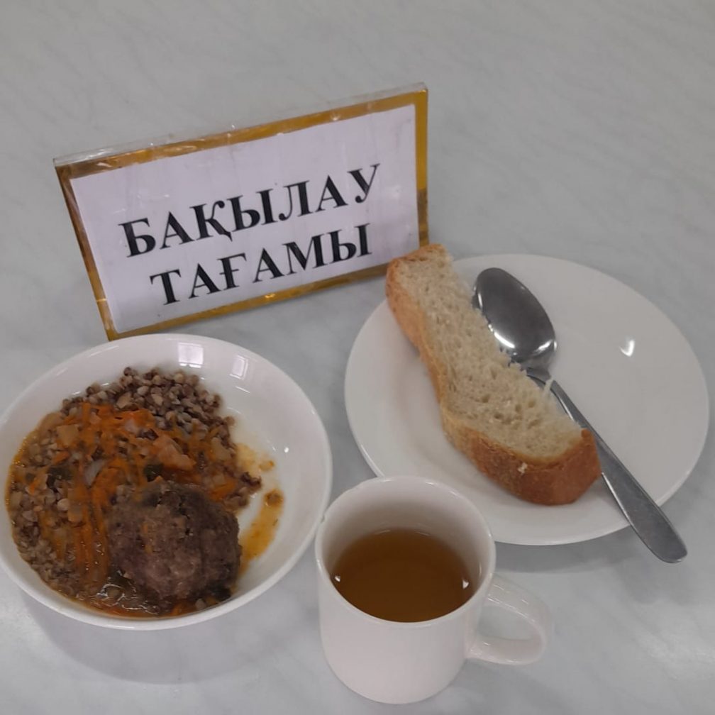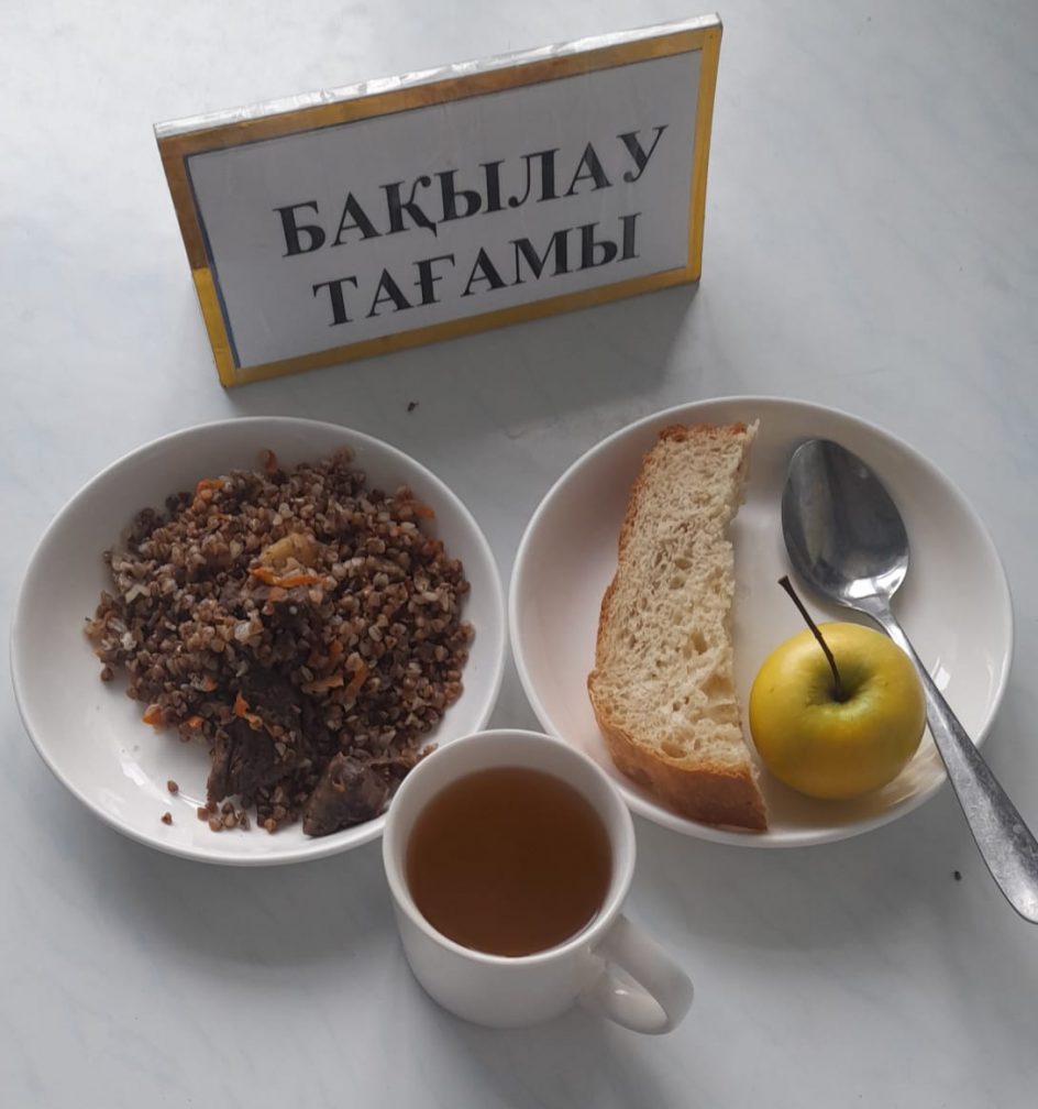 26 ақпан 2025 жыл Ас мәзірі: 1.Қарақұмық қосылған сиыр гуляшы 2.Нан 3.Қант қосылған шай 4.Сүзбе